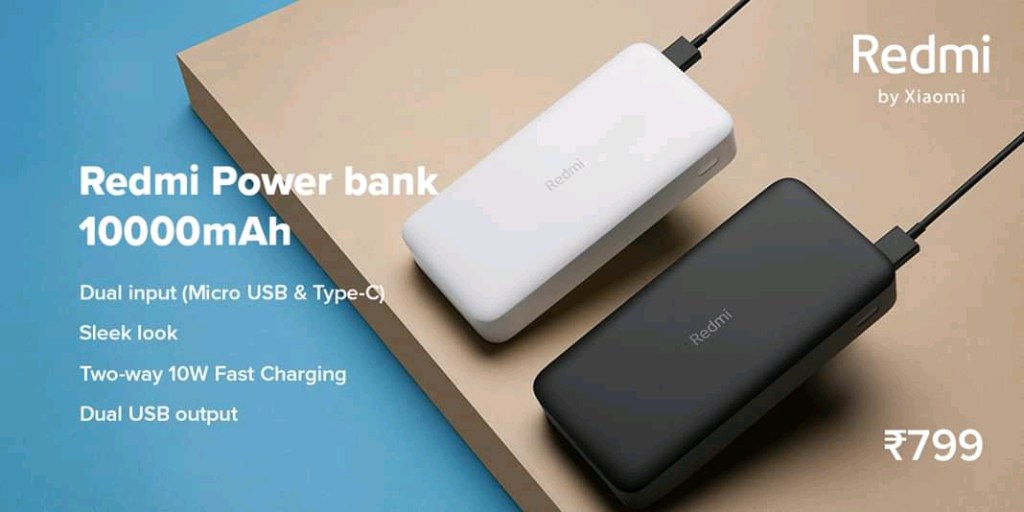 Redmi 10000mAh power bank is priced at Rs. 799 and the 20000mAh 18w two-way fast chargind power bank is priced at Rs. 1499. Both power banks will be available starting 18th February, 2020 from Mi.com and Mi Home stores.