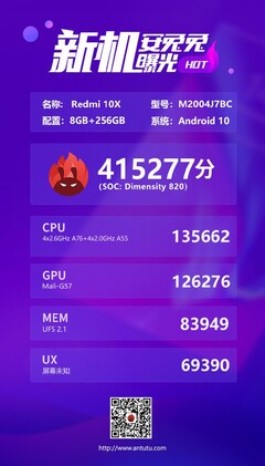 MediaTek Dimensity 820 SoC in Redmi 10X smartphone benches like a champion on AnTuTu and leaves the Snapdragon 765G in the dust